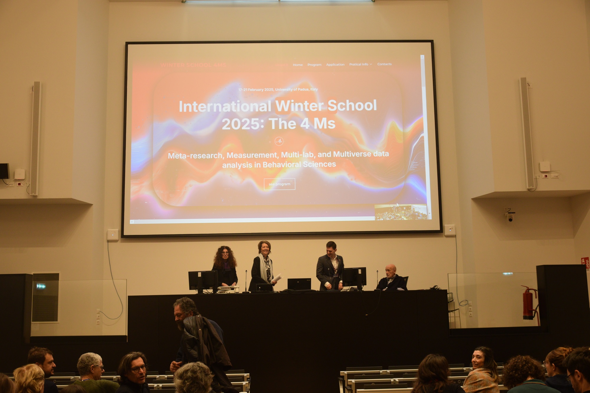 For five days in February, the University of Padua’s School of Psychology hosted the International Winter School 2025: The 4Ms. From February 17 to 21, 31 participants from 15 countries came together to strengthen their skills in what has become a central concern in psychological science: ensuring research is rigorous, reliable and transparent. The “4Ms” — Meta-research, Measurement, Multi-lab and Multiverse data analysis — reflect both the challenges and the opportunities facing behavioral science today. Against the backdrop of the Replication Crisis, the program addressed methodological issues that have raised questions about the credibility of published findings. Leading international scholars, including Dorothy Bishop (University of Oxford), Daniël Lakens (Eindhoven University of Technology), Jessica Flake (University of British Columbia), Ulrich Schimmack (University of Toronto) and Lisa DeBruine (University of Glasgow), joined Italian colleagues to deliver lectures, workshops and applied sessions. Participants welcomed the balance between theory and practice, with sessions ranging from psychometric validity to multiverse analysis, a technique designed to test how robust results remain across different analytic choices. Outside the classroom, a guided tour of the historic Palazzo Bo and a social dinner at Caffè Pedrocchi offered space for informal exchange and networking.